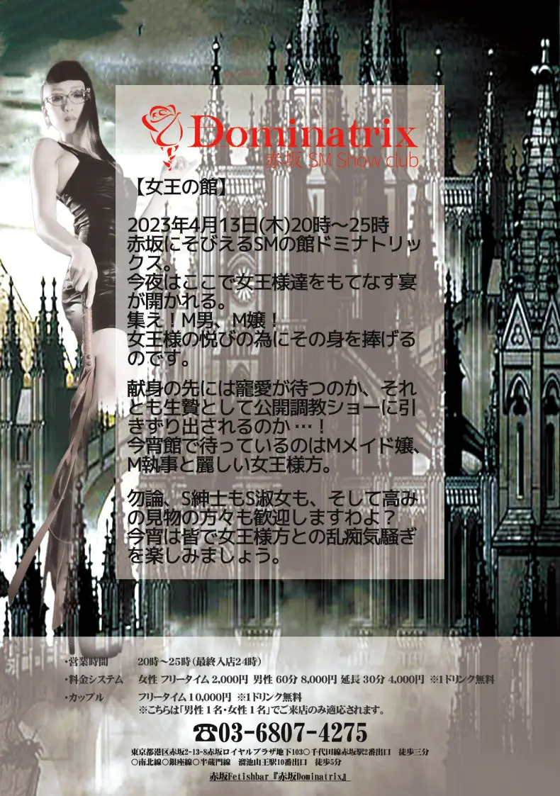 10月19日金曜日のSMバー赤坂Dominatrixは